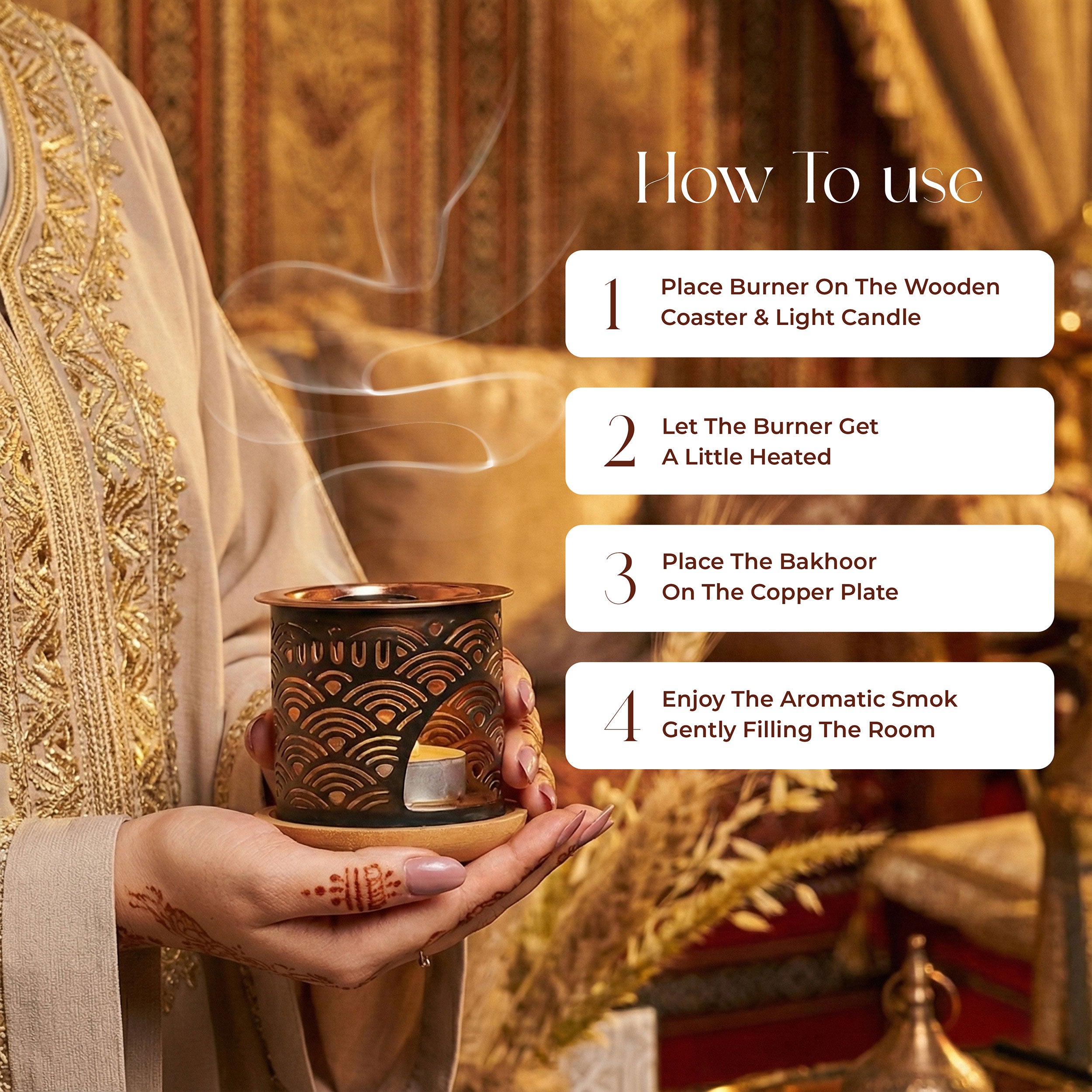 It is easy to use as it is suitable for both electric & charcoal bakhoor burners. Simply place a piece of bakhoor on a charcoal disc in a traditional bakhoor burner (Mabkhara) or use an electric bakhoor burner. Now allow the bakhoor to slowly release its fragrance and fill your space with a rich, pleasant and soothing aroma.