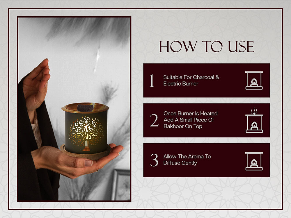 It is easy to use as it is suitable for both electric & charcoal bakhoor burners. Simply place a piece of bakhoor on a charcoal disc in a traditional bakhoor burner (Mabkhara) or use an electric bakhoor burner. Now allow the bakhoor to slowly release its fragrance and fill your space with a rich, pleasant and soothing aroma.