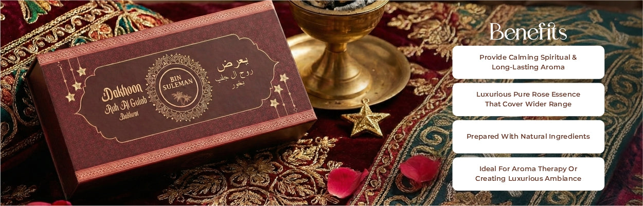 ✅ BIN-SULEMAN Dakhoon Ruh Al Gulab Bakhoor releases a luxurious, lingering fragrance that speaks of Arabian opulence and spiritual tranquility providing you a luxurious and spicy fragrance with a premium blend of finest ingredients like Agarwood, Sandalwood and flowers extracts oil like Rose, Saffron and Patchouli. It is crafted in such a way that it elevates every space with richness, depth, and heritage of natural ingredients present in it.